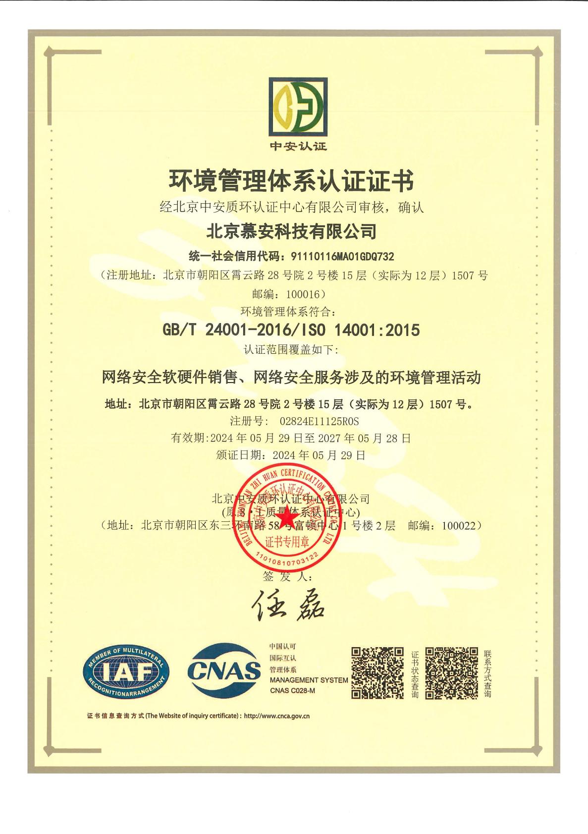 ISO14001 北京慕安科技有限公司-电子证书中文