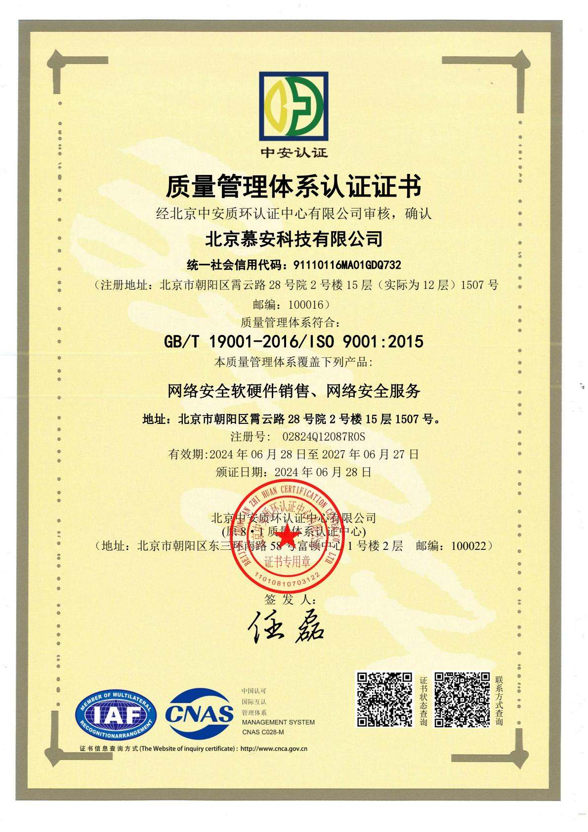 ISO9001 北京慕安科技有限公司-电子证书中文
