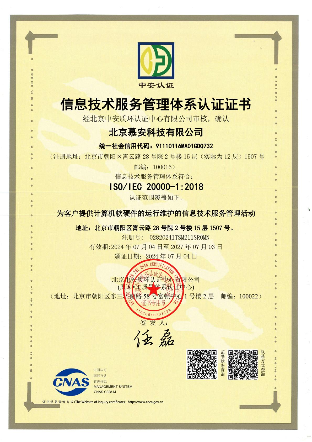 iso20000 北京慕安科技有限公司-电子证书中文