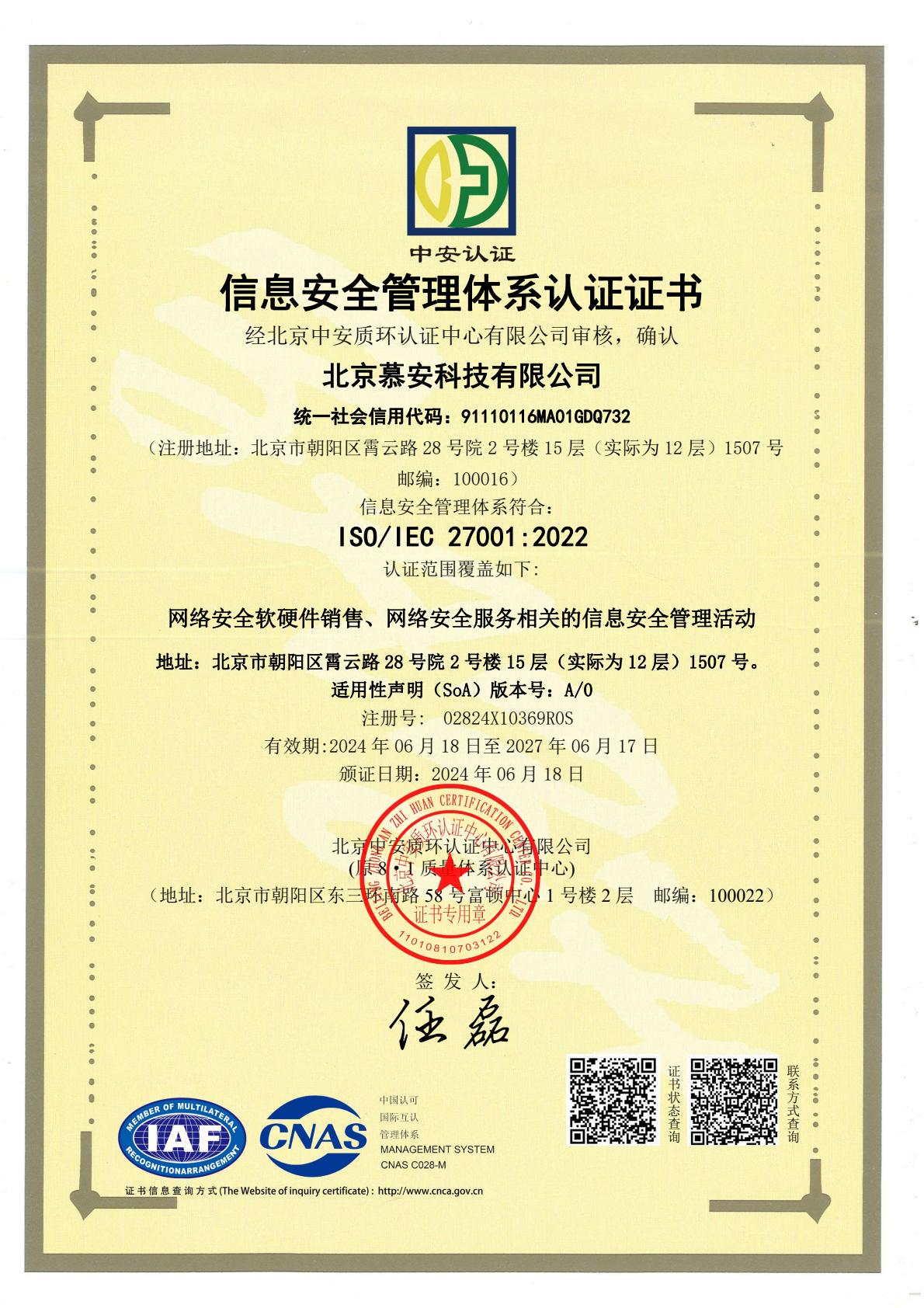 iso27001 北京慕安科技有限公司-电子证书中文